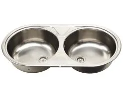 Opbouwspoelbak RVS Dubbel 80×50 Cm Met 2 Korfpluggen