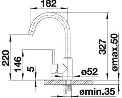 | Kenmerken | Keramische cartouche, Bedieningshendel van metaal, Draaibare uitloop, Intrinsiek veilig tegen terugstromen, Ingebouwde vuilvangzeef, LGA-certificering, Eenhendelmengkraan |