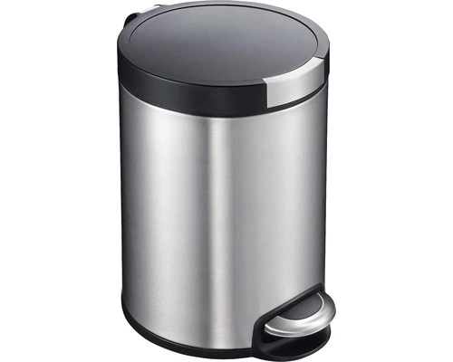 Ronde pedaalemmer met kunststof deksel met RVS accenten. Voorzien van kunststof binnenemmer en gedempt sluitend deksel.