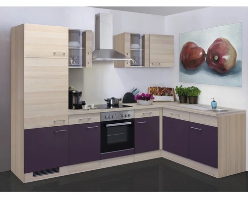 Flex-Well FLEX WELL Hoekkeuken Met Apparatuur Focus Acacia En Aubergine Mat 280×170 Cm