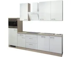 Drie 89 cm hoge bovenkasten met elk 2 legplanken bieden meteen genoeg plek voor serviesgoed en glazen. In de 50 cm brede onderkast met lade en draaideur alsmede in de 60 cm brede kookplaatkast met 2 lades vinden bestek, potten en pannen en/of voorraden een plekje. Ook de gootsteenkast biedt nog genoeg plaats voor het bewaren van allerlei keukenbenodigdheden en poetsspullen. En mocht het nodig zijn, dan kun je je keuken gemakkelijk uitbreiden met extra kasten uit de gelijknamige serie. Bijzonder praktisch is de ombouwkast met verhoogde ovennis en daaronder de 88 cm hoge koelkastnis.