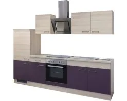 Flex-Well FLEX WELL Keukenblok Met Apparatuur Focus Acacia En Aubergine Mat 270×60 Cm