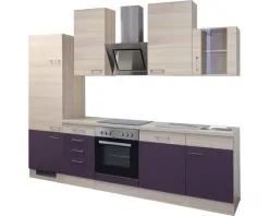 Flex-Well FLEX WELL Keukenblok Met Apparatuur Focus Acacia En Aubergine Mat 280×60 Cm