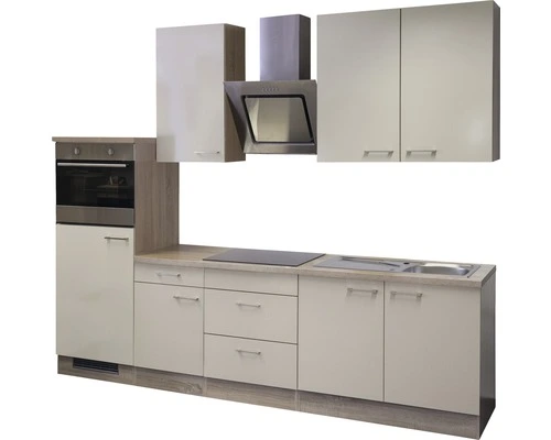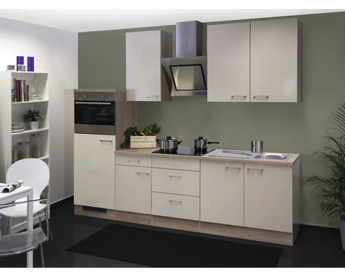 Drie 89 cm hoge bovenkasten met elk 2 legplanken bieden meteen genoeg plek voor serviesgoed en glazen. In de 50 cm brede onderkast met lade en draaideur alsmede in de 60 cm brede kookplaatkast met 2 lades vinden bestek, potten en pannen en/of voorraden een plekje. Ook de gootsteenkast biedt nog genoeg plaats voor het bewaren van allerlei keukenbenodigdheden en poetsspullen. En mocht het nodig zijn, dan kun je je keuken gemakkelijk uitbreiden met extra kasten uit de gelijknamige serie. Bijzonder praktisch is de ombouwkast met verhoogde ovennis en daaronder de 88 cm hoge koelkastnis.