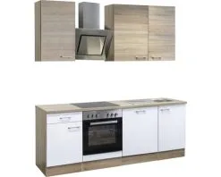 Binnen een ruimte van 220 cm vind je alles wat je nodig hebt om te koken, af te wassen en een goed gevulde voorraad aan te leggen. Met een zuinig inbouwfornuis met roestvrijstalen plint, oven en glaskeramische kookplaat tover je heerlijke gerechten op tafel voor het hele gezin. Een bijzonder staaltje design vormt de krachtige roestvrijstalen afzuigkap, die door zijn speciale vorm tijdens het koken volkomen bewegingsvrijheid biedt. De drie extra grote bovenkasten van 50 c.q. 60 cm breed met elk twee legplanken bieden genoeg plek voor glazen en serviesgoed. De volledig geïntegreerde roestvrijstalen vaatwasser behaalt goede resultaten in de belangrijke functies reiniging en drogen. Een 50 cm brede onderkast met lade en legplank en de 50 cm brede gootsteenkast met roestvrijstalen gootsteen en afdruipgedeelte bieden ook nog extra waardevolle opslagruimte. Om de inrichting van de keuken voor je te vereenvoudigen zijn de kastdeuren zowel voor links- als rechtszijdige montage geschikt.