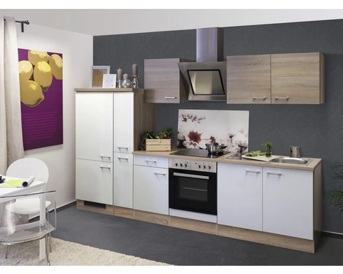 Flex-Well FLEX WELL Keukenblok Met Apparatuur Samoa Wit En Sonoma Eiken Mat 300×60 Cm