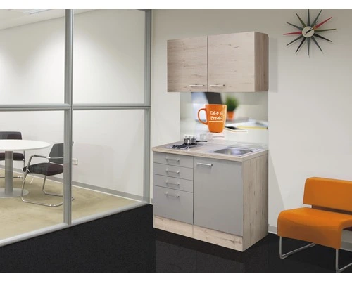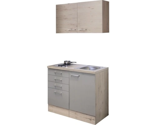 Flex-Well FLEX WELL Minikeuken Met Apparatuur Riva Kwartsiet Cubaniet En San Remo Licht Eiken Mat 100×60 Cm