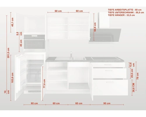 Het keukenblok wordt geleverd exclusief spoelbak, accessoires en apparatuur.